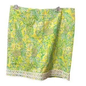 Lilly Pulitzer Yellow Green Pineapple Jungle Cat Mini Skirt Size 8