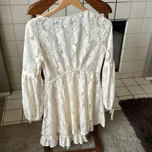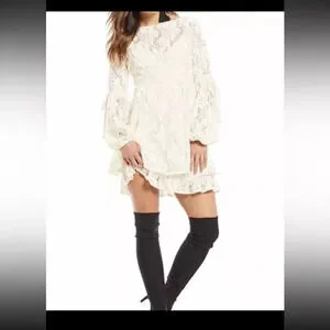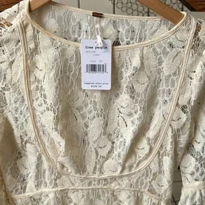 NWT Free People Ruby Lace With Tie Sleeves Ivory Dress, Size xs