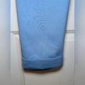Elevate your professional wardrobe with these sophisticated Ann Taylor Eva fit ankle pants in a stunning cornflower blue. Perfectly capturing the careercore and office siren aesthetic, these trousers feature a tailored slim leg silhouette with a classic ankle cuff for a polished, minimalist look. Crafted from a comfortable stretch blend, they offer a flexible yet structured fit that holds its shape all day. These size 8 pants are designed with a clean flat front, functional side pockets, and a secure hook-and-eye closure. Whether you're heading to a high-stakes meeting or styling a chic business casual outfit, these minimalist blue slacks are a versatile modern essential for any professional capsule wardrobe