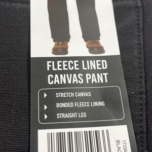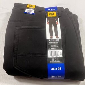 CAT Fleece Lined Canvas Pant Mens 36x29 Black NEW Stretch Straight Leg New