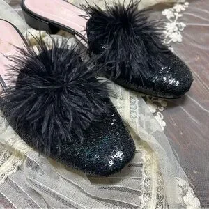 Kate Spade black sequin flat with feather details size 7.5 step un