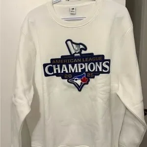 Celebrate the 2025 American League title in this white Toronto Blue Jays pullover sweatshirt. Exclusive to the first 15,000 fans into the March 30, 2026 game.