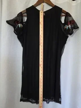 Kyra Tunic Black Cold Shoulder Large Embroidered Floral Tulle Whimsigoth Fairy