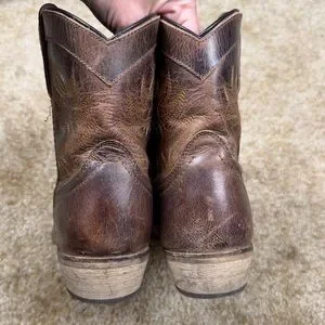 Condition: Good pre-owned condition with normal wear on soles and leather consistent with distressed western style.