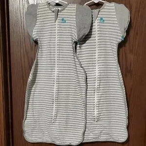 Love To Dream Swaddle Up Transisition Bag set of 2. Both size 0 (large) 19 -24 pounds. One has slightly more wash wear. Otherwise good condition. See photos.