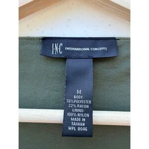 INC Ruched Camo Dress M Utility Chic Olive Green Beaded Cowl Neck Midi Dress