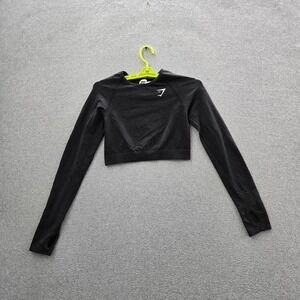 Gymshark Women Shirt M Black Vital Crop Top Activewear Crew Neck Pullover