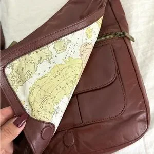 HOBO vintage mahogany Crossbody Bag with rare map lining