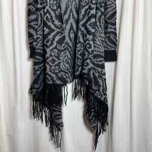 Style tags wrap fringe shawl knit animal print boho oversized chic western festive winter longline cardigan all over print mohair comfort casual
