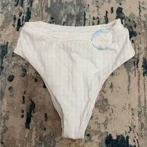 Soft ribbed fabric in bright white. High-cut silhouette for a modern fit. Comfortable stretch and simple detail.