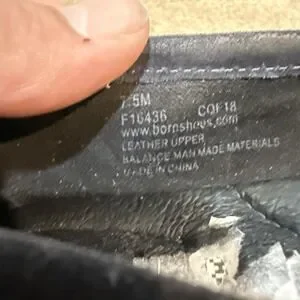 Pre-owned Born suede loafers with light overall wear from previous use. Suede uppers show slight rubbing and nap wear at toes and sides, and one insole has residual sticker paper as shown. Rubber outsoles display light tread wear and white marker writing; shoes only, original box and additional accessories are not included.