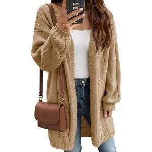Womens Cable Knit Long Cardigan Loose Fit Fall Sweater Open Front Casual