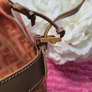 Elegant Fendi bucket bag with a bold orange pattern. Tan accents add sophistication. comes with a dust bag. It is also a mini bag sold separately in my closet FRIST PICTURE IS FOR REFERENCE