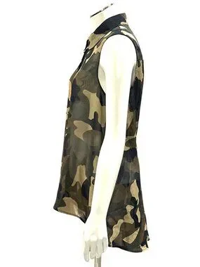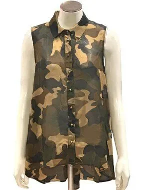 Forever 21 Medium Brown Black Camo Sleeveless Chiffon Blouse Grunge Utility Core