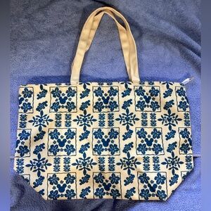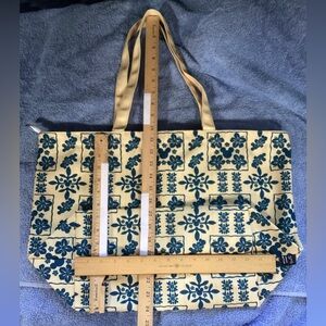 New without tags, never used Hawaiian print canvas tote bag with zipper opening and one zippered pocket inside. Please see measurements of tote and inside pocket. Both zippers work well.