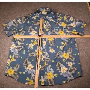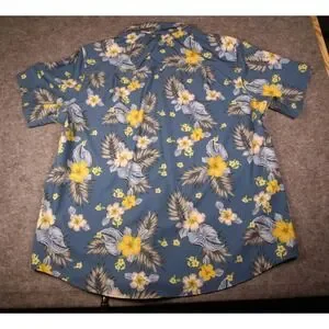 this item is a Hurley Mens XXL Blue Hawaiian Floral Hibiscus Short Sleeve Camp Shirt. this item is pre-owned but is in very good condition as can be seen in the photos.