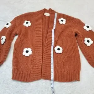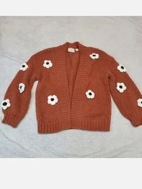 Anthropologie Maeve Brown Rust Chunky Knit Floral Cottagecore Cardigan One Size