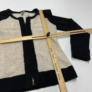 J Crew Jacket Womens Small Black White Colorblock Zip Front Boucle Parisian