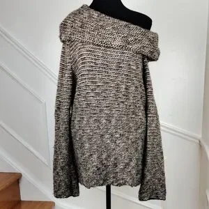 THE PIECE: A rare vintage find from the iconic British heritage brand, Jaeger. This sweater is crafted from a luxurious blend of Camel Hair and Wool, offering incredible warmth with a soft, substantial hand-feel. It features a unique, oversized ribbed collar that can be worn off-the-shoulder, as a draped portrait collar, or bundled up as a cowl neck. The 60/40 Camel Hair & Wool blend makes this significantly softer and warmer than a standard sheep's wool sweater, with a beautiful natural luster.
