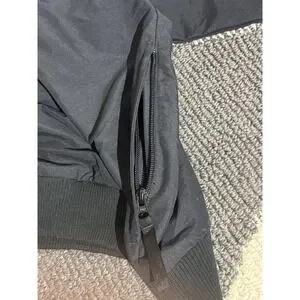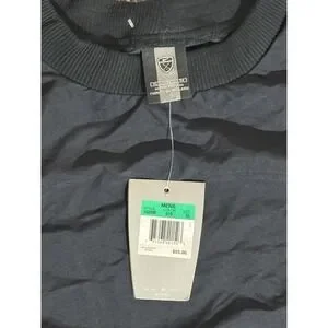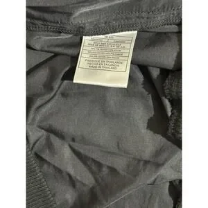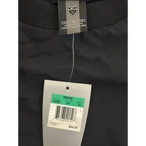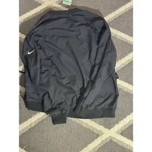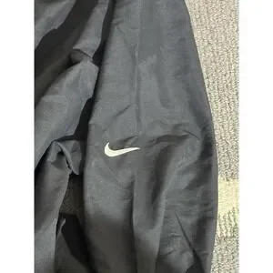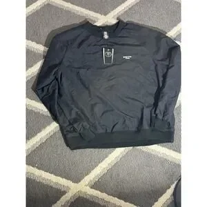 The Nike Golf Pullover Men's XL Black ClimaFit Windbreaker Jacket is a stylish and functional outerwear piece designed for outdoor activities such as golf or walking. Made of lightweight polyester with a durable nylon lining, this jacket features a solid black color with striped trim and a logo accent. The jacket is equipped with zipped pockets, an elastic waist, and is breathable and wind-resistant, making it suitable for all seasons. Perfect for casual wear or travel, this Nike Dri-FIT pullover combines classic style with practical performance features, ideal for the modern man on the go.