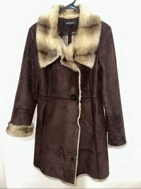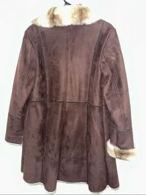 Ellen Tracy Faux Shearling Faux Fur Women’s Dark Brown Coat Size M
