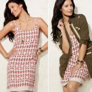CAbi Dress Size Medium Batik Print Mini Slip V-Neck Summer Tank Shift Red