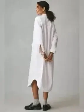 Anthropologie Maeve Long-Sleeve Cotton Midi Shirt Dress Heart Pockets Small NWT