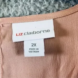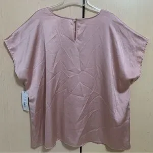 NEW Liz Claiborne Women's Short Sleeve Back Keyhole Satin Blouse Pink Plus 2X