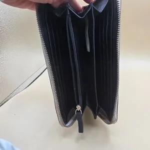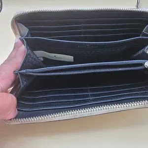 Interior Details: Includes approximately 12–16 card slots, multiple billfolds, and a central zippered coin compartment.