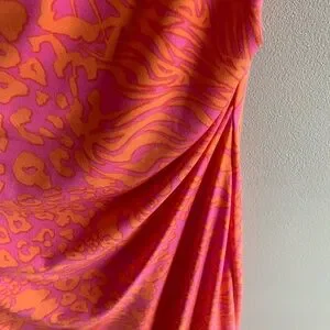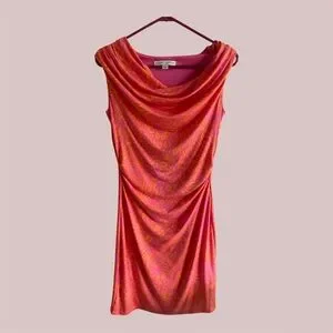 Larry Levine Dress Women's S Pink Orange Cocktail Stretch Ruched Chittah Pattern