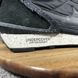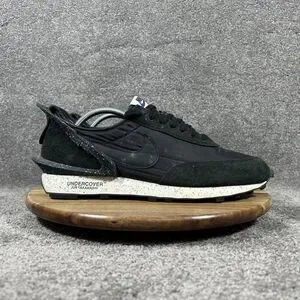 The Nike x UNDERCOVER Daybreak Jun Takahashi CJ3295-001 Mens Sz 13 Black Shoes are a stylish and comfortable option for men looking for sneakers. These athletic shoes feature a lace-up closure, rubber outsole, and cushioned insole for added comfort. The black colorway with a touch of black-sail accents gives a modern and versatile look, suitable for various occasions such as activewear, casual outings, or workwear. With a low-top silhouette and breathable upper material, these shoes offer both style and functionality for everyday wear.