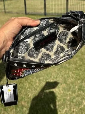 NWT Ed Hardy Black Shoulder Bag with Twin Unicorn Embroidery