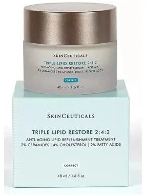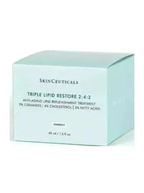 Restore moisture, improve texture, and support skin’s natural barrier with the luxurious SkinCeuticals Triple Lipid Restore 2:4:2 cream. This rich anti-aging face moisturizer is formulated with a precise ratio of essential lipids to help replenish skin and visibly reduce signs of aging.