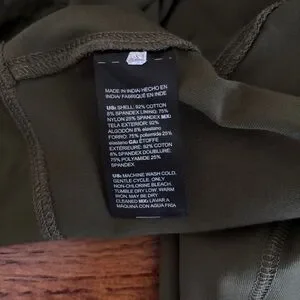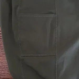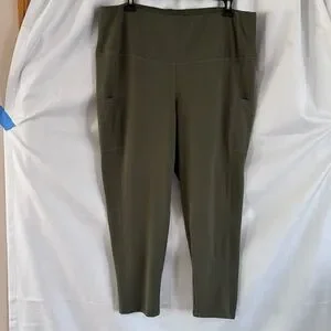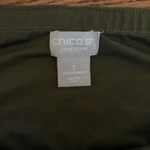 Comfortable olive green capri leggings with a high, supportive waistband. Two side pockets for hands or phone. Smooth, stretch fabric for everyday wear and easy movement. Versatile style perfect for workouts or casual days. Chicos Zenergy size 3. Measurements laying flat ~ waist 19” across, rise 12”, length 24”. Smoke free home