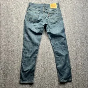 Levi's 511 Slim Fit jeans in a classic dark wash blue denim. These versatile pants feature a modern slim silhouette with a bit of stretch for comfort, classic five-pocket styling, and the iconic leather brand patch at the back waist. The durable cotton-blend fabric ensures a long-lasting wear while maintaining a sharp, tailored look suitable for casual or smart-casual occasions.