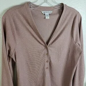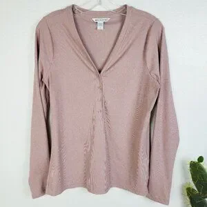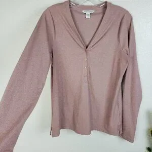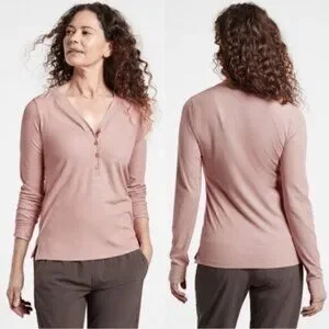 NWOT Athleta Uptempo Ribbed Henley Top Mauve Pink size Large