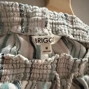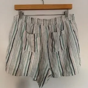Briggs Womens Medium Striped Smocked Waist Linen Blend Shorts Teal Pink White
