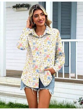 Brand new, never worn, and in flawless condition — this elegant button-down blouse delivers a versatile, comfortable look perfect for the office, casual weekends, or vacation wear. The fit is loose and relaxed, with thoughtful details for mobility and style.