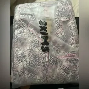 Your old pajamas can’t compete with this soft, ultra-comfortable sleep set. Features a slightly oversized button-up top with long sleeves, a chest pocket, and piping details. The straight leg pants have a relaxed fit and a stretchy waistband with an adjustable interior drawstring. Fits true to size.
