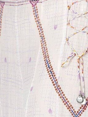 Charming dreamtime flared pant, the Tanami Road Flares with Lace up Side are part of CAMILLA's 15 year anniversary collection, exuding unrivalled elegance on a crisp white canvas with intricate highlights of pink and purple hues.
