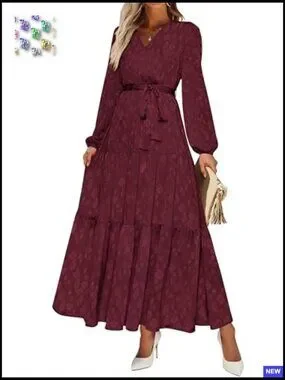 Long Sleeve Wrap V Neck Floral Maxi Dress Boho Chiffon Flowy Tie Waist