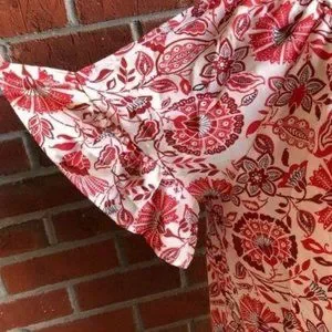 Red & white floral blouse has flutter sleeves