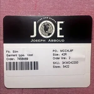 NWT JOE Joseph Abboud CUSTOM MADE Dusty Rose Slim Fit Suit Vest - Pink Size 42R