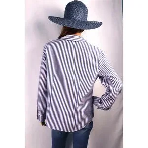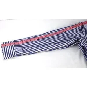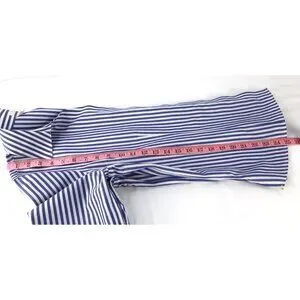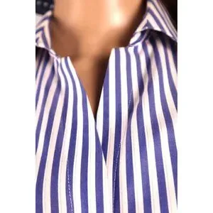 This striking blue and white striped shirt by Chico's is a blend of comfort and modern elegance. Crafted with a no-iron fabric, this long-sleeve shirt features a subtle metallic sheen, adding a hint of sophistication to its crisp design. Its versatile and timeless appeal makes it an ideal choice for various settings, whether casual or semi-formal.