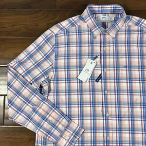 Southern Tide Men's Size Medium Parfait Pink Gaspee Plaid Sport Button Shirt