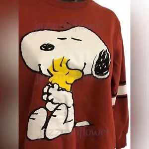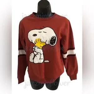 Dark red brick Snoopy graphic print stripe sleeves sweatshirt XS brand new