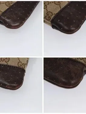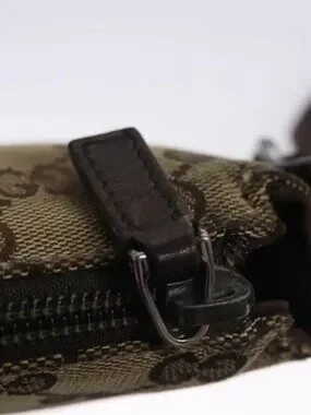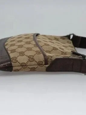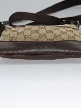 GUCCI GG Canvas Shoulder Bag Beige Brown gold
