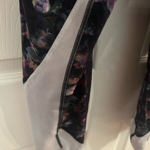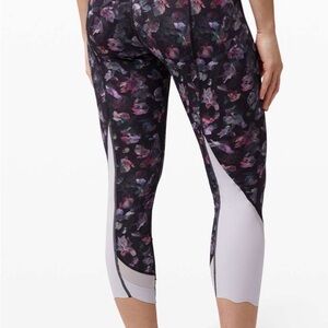 Scalloped detailing adds feminine flair to these adjustable rise crops. Designed to fit like a second skin, they're perfect for yoga or the gym.