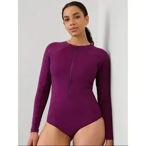 New Athleta One Piece Swimsuit XL Rashguard Purple Long Sleeve NWT Front Zip