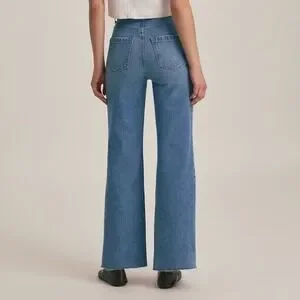Keywords: Favorite Daughter jeans, Jordie wide leg, super high rise, raw hem, distressed denim, wide leg denim, premium denim, contemporary denim, fashion jeans, casual denim, everyday wear, trendy jeans, bootcut alternative
